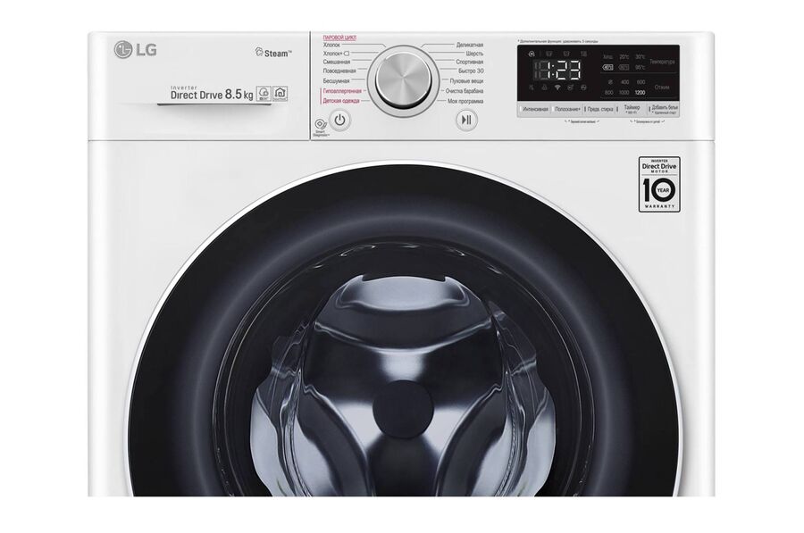 Стиральная машина LG F2V5GS0W 47.5см, 8,5кг с паром и дозагрузкой белья, AI IDD, Wi-Fi