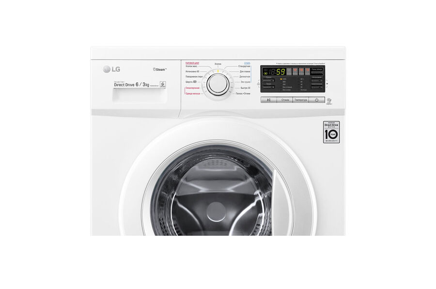 Узкая стиральная машина LG F1296CDS0 44 см, с сушкой, 6/3кг, функцией пара Steam и технологией «6 движений заботы»