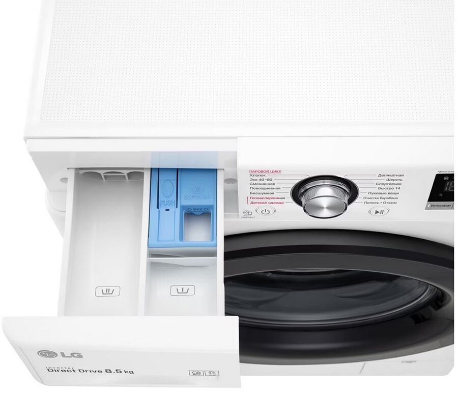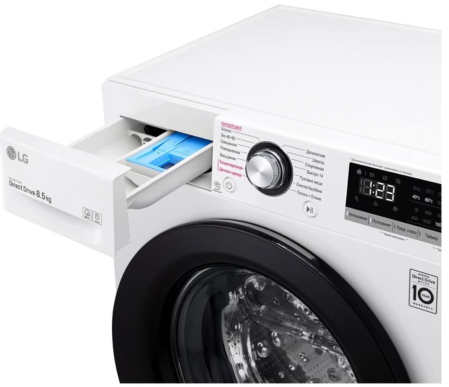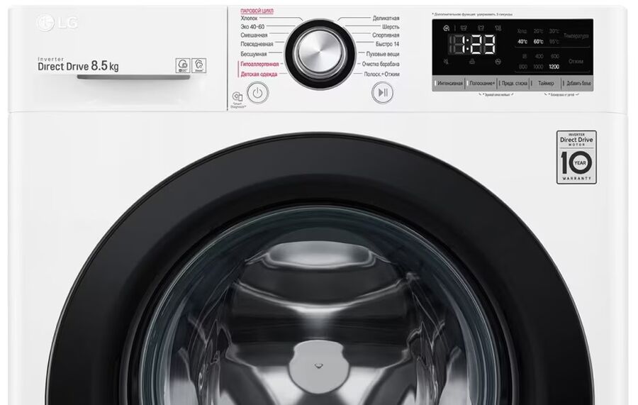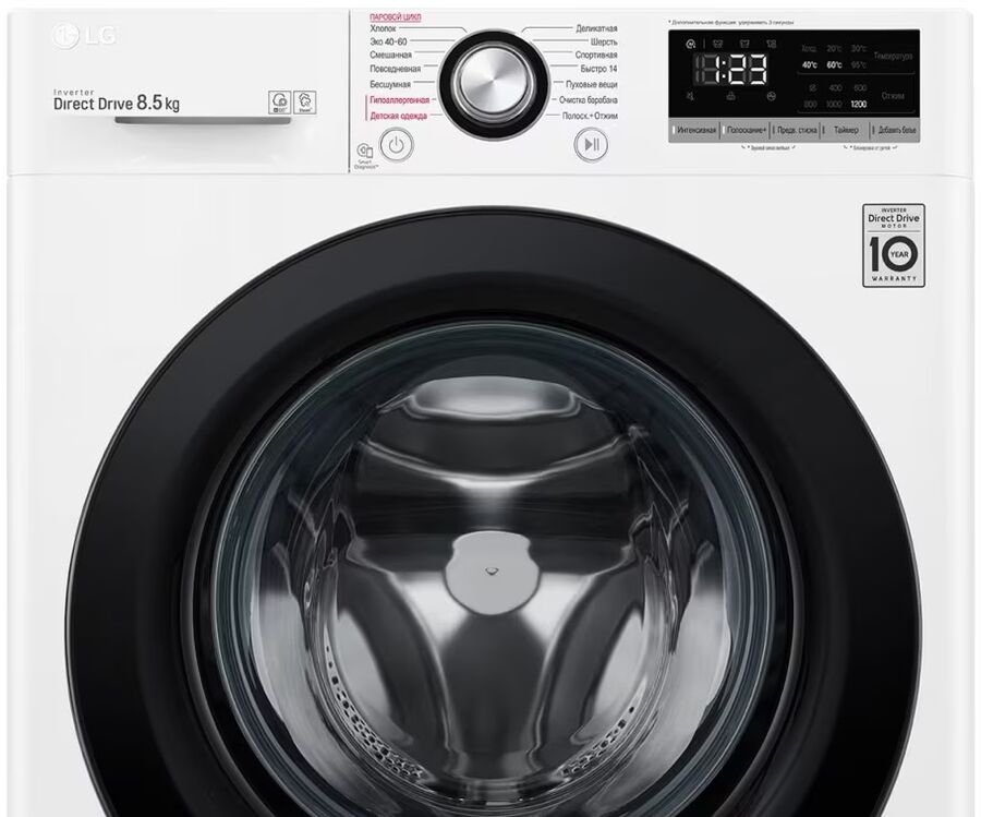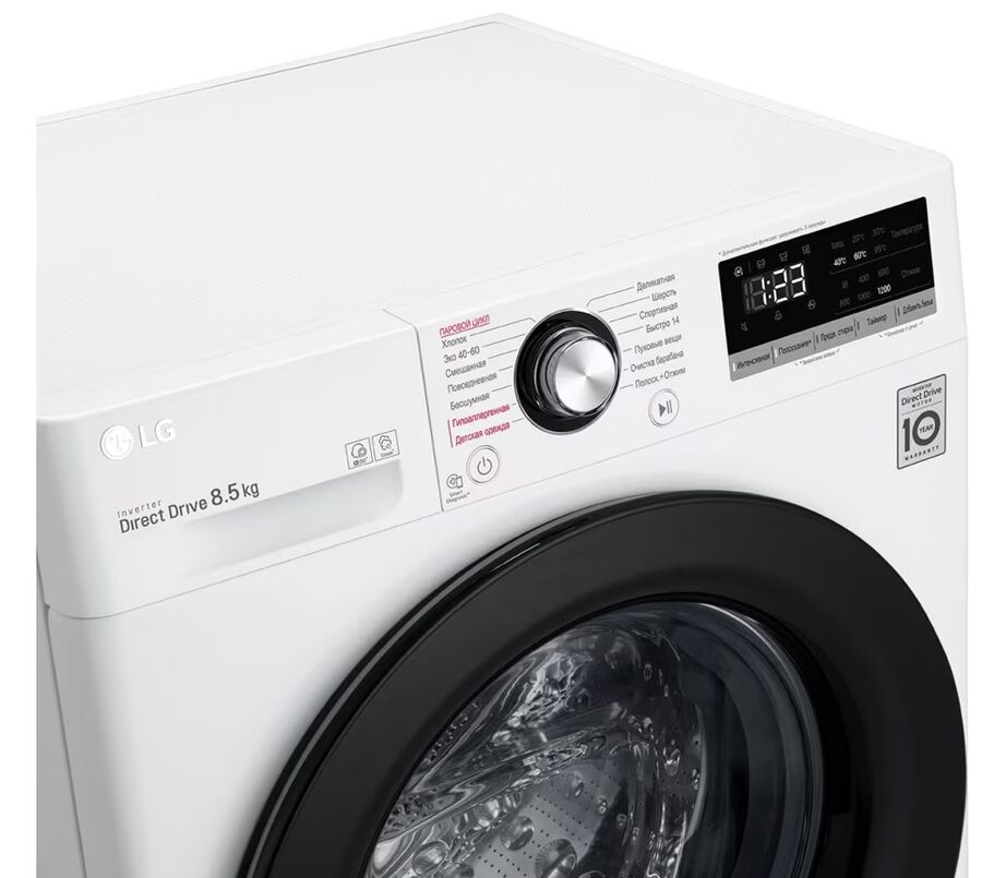 Стиральная машина LG F2V3GS6W 47.5см. 8.5кг, AI DD, Функция пара Steam, добавить белье