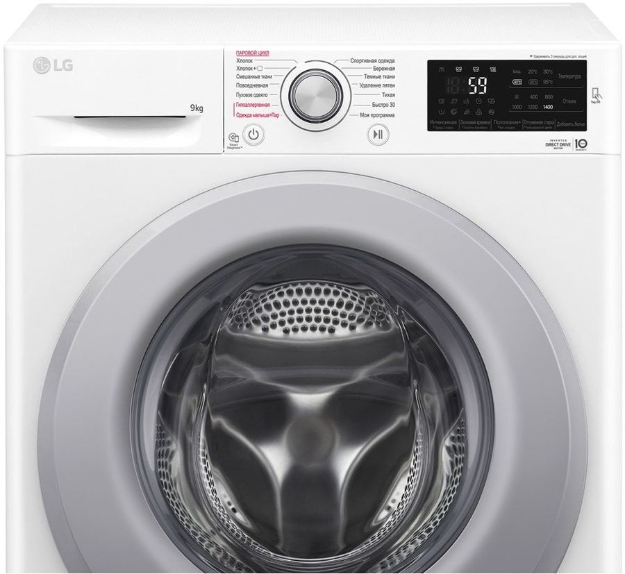 LGБытовая техникаСтиральные машиныСтандартные стиральные машиныСтиральная машина LG F4M5VS4WP 9кг. функцией пара и дозагрузкой белья