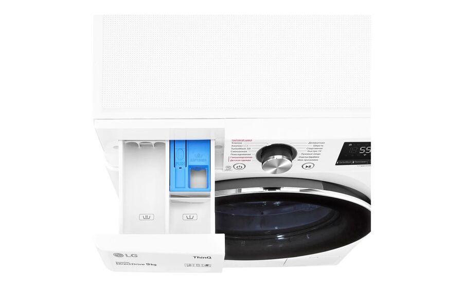 Стиральная машина LG F4V9VS9W 56.5см, 9кг, технологиия AI DD, Функция пара и дозагрузка белья, TurboWash